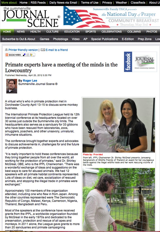 ดร.เชอร์ลีย์ ได้เริ่มงานคุ้มครองชะนีมาตั้งแต่ 40 ปีก่อนหน้านี้ ที่ประเทศไทยนี้เอง และยังเป็นผู้อุทิศตนต่อสู้เพื่อปกป้องลิงทุกสายพันธุ์ทั่วโลก ด้วยความที่เรายกให้เธออยู่ในจุดสูงสุดของกลุ่มผู้พิทักษ์สัตว์ประเภทลิงจากทั่วโลก เราจึงรู้สึกเป็นเกียรติอย่างยิ่งที่ได้รับรางวัลนี้